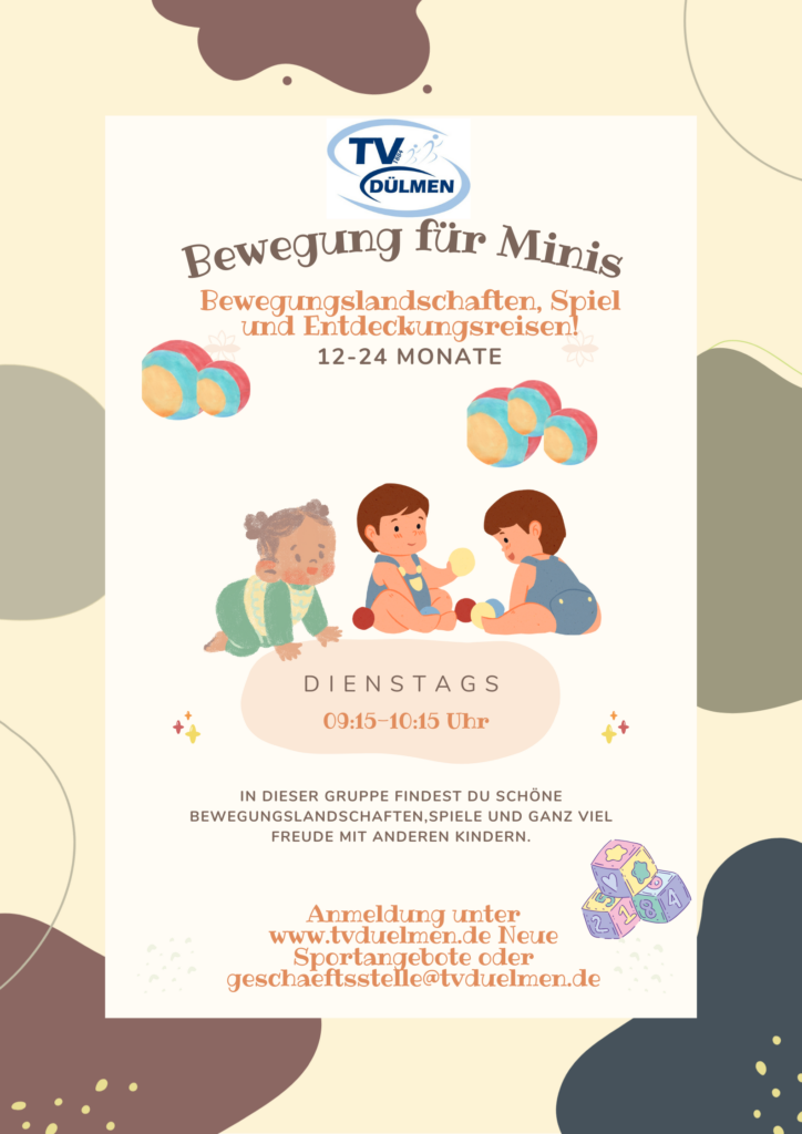 Bei unseren Bewegung für Minis Kursen darf in Begleitung eines Elternteils getobt, geklettert, balanciert und gespielt werden. Hier dürfen die kleinen Bewegungskünstler mit ihren Eltern gemeinsam singen und eine Bewegungslandschaft erkunden.